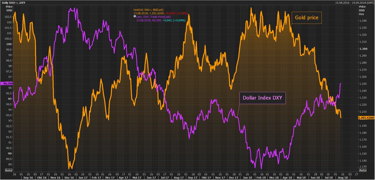 消息面解析:在过往,也许没有多少人能想到,新兴市场的危机反而将成为传统避险资产黄金的梦魇,而如今,这一幕却实实在在地上演了!行情数据显示,金价周一跌破每盎司1200美元大关,为19个月以来首次,因土耳其里拉崩跌引发金融市场动荡后,投资者买入美债和美元,而非黄金。