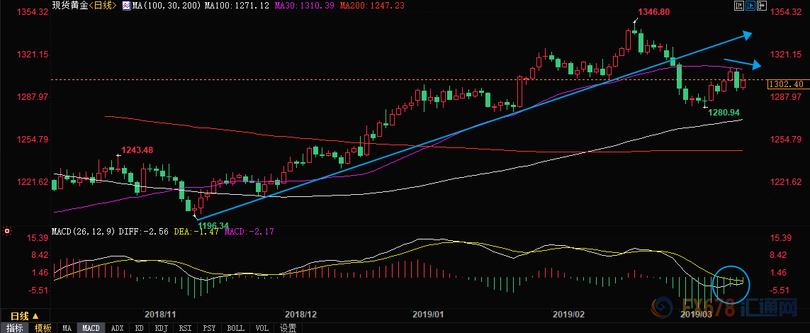 如果近期黄金下行,那么下方最直接的支撑是1289美元附近,跌破这个位置将测试1271美元附近(100日均线),在此之前1280美元也是一个较强的支撑。