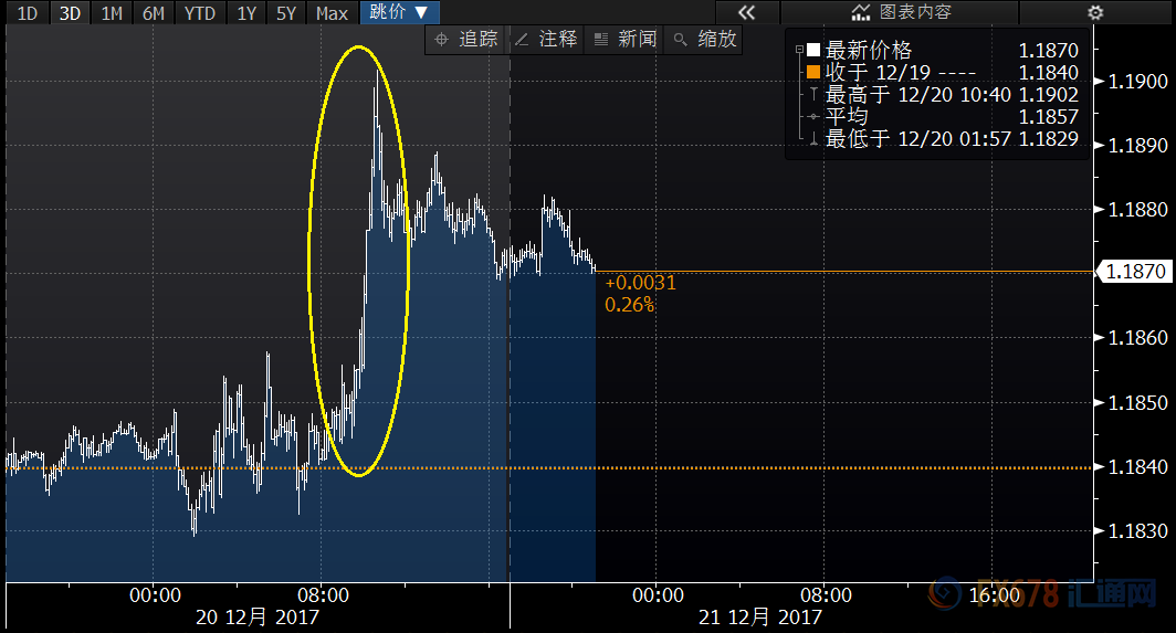 与美国税改过关消息被看淡相映成趣的却是,' 德国政局再度柳暗花明的状况,令' 欧元汇价一度大幅拉升,时隔三周之后重上1.19关口。在经历了三个月充满纠缠扯皮的组阁闹剧之后,德国总理' 默克尔终于在圣诞假期来临前同意与议会第二大党社民党继续共组“大联合”政府。双方将在年后就各方面的议题进行磋商,并力争尽快让新政府就位。这一状况令此前一直重压' 欧元区投资者信心的一块大石头也终于落地。
