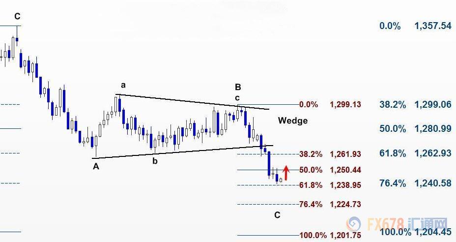 强化这道支撑点的还有1241美元,此处为7月10日低点1204.45至1357.54美元这波升势的76.4%回档位。