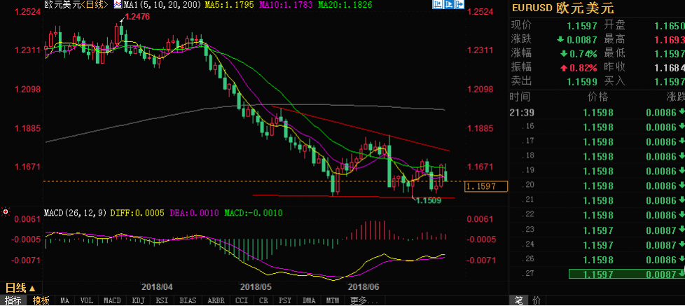 汇通网讯——欧元兑美元延续亚洲时段的疲软势态,一度跌穿1.16关口,难以延续上周的强劲反弹之势,德国内政部长兼基社盟主席泽霍费尔与总理默克尔就移民难民政策产生严重分歧,叠加美元买需回升,贸易紧张局势掩盖美国经济活力,欧元恐深跌至1.12。