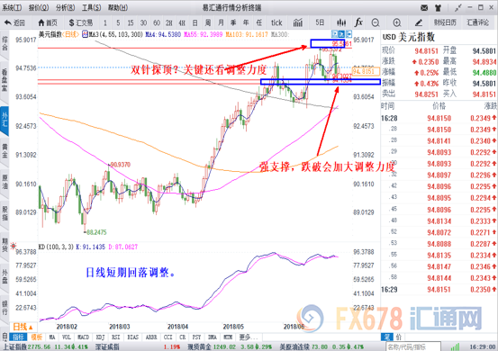 nload=imgresize(this); >周线和日线冲高95.60附近重要压制,短期承压调整。能否继续延续多头走势,还需要进一步等待这个区间位置的突破。短期日线在94.20--94.30区间支撑也是比较强。一旦突破94.20--95.60区间,美元将会迎来短期快速的单边行情。