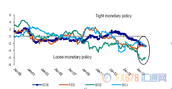 美银美林的G10外汇策略主管Athanasios Vamvakidis表示:“市场似乎更关注货币政策收紧的可能性,而不是央行实际做的事情。我们的研究结果表明,尽管加息导致货币政策趋紧,但全球货币政策仍然非常宽松;其中日本央行、英国银行、' 美联储都处于宽松货币政策的范围,而这就给未来的紧缩带来巨大的空间。