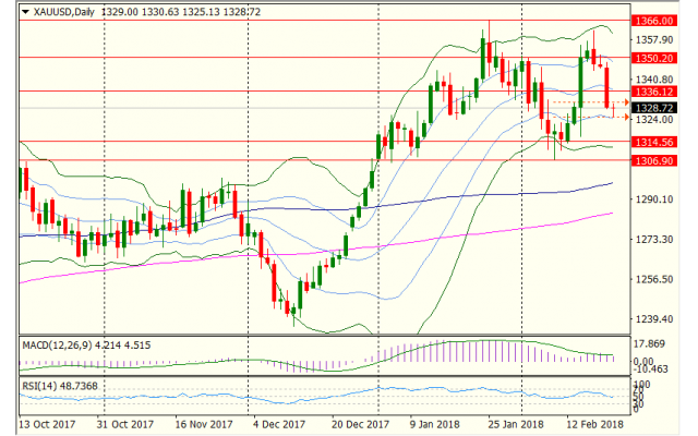 上方阻力位于20日均线1336.12美元,以及1350美元。