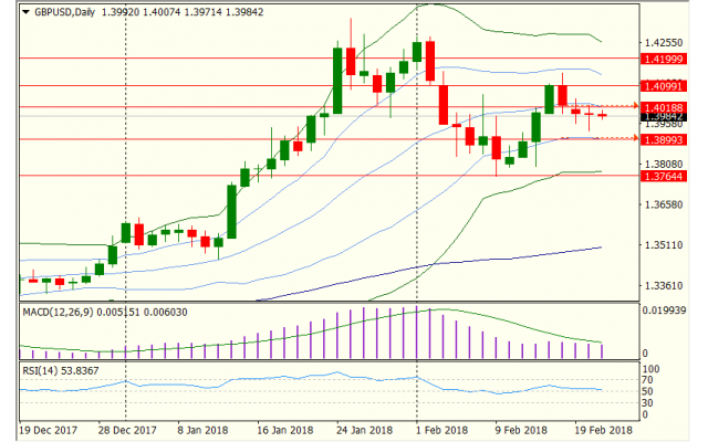 上方阻力位于1.40-1.4019(20日均线)、1.41以及1.42;