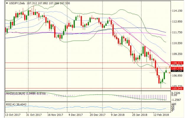 下方支撑位于107、106关口,以及2月16日低点105.54。