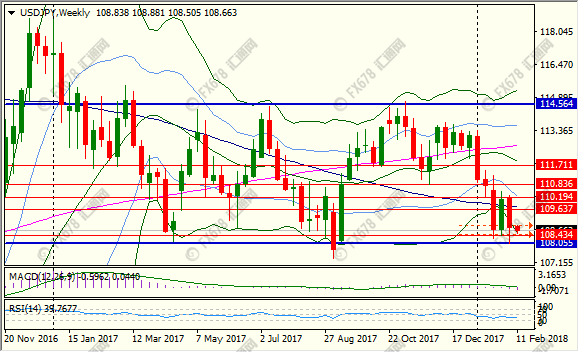下方支撑位于去年年初以来震荡区间底部108.05附近。 【免责声明】本文仅代表作者本人观点,与汇通网无关。汇通网对文中陈述、观点判断保持中立,不对所包含内容的准确性、可靠性或完整性提供任何明示或暗示的保证,且不构成任何投资建议,请读者仅作参考,并自行承担全部风险与责任。