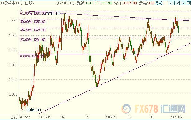 日线图上的楔型、波浪型态和费波纳奇预测分析都显示,目标位在23.6%预测水准1291美元。若金价能站上1319.96美元,则可能继续有限升向1325美元。