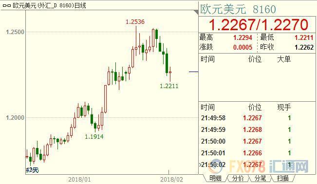 美元指数下挫0.15%至90.203,但盘中创1月23日以来高位90.567;欧元受到英镑短线暴涨带动,兑美元汇率上浮0.04%至1.2267。此前欧洲股市开盘再度下跌,欧元盘中一度由涨转跌。