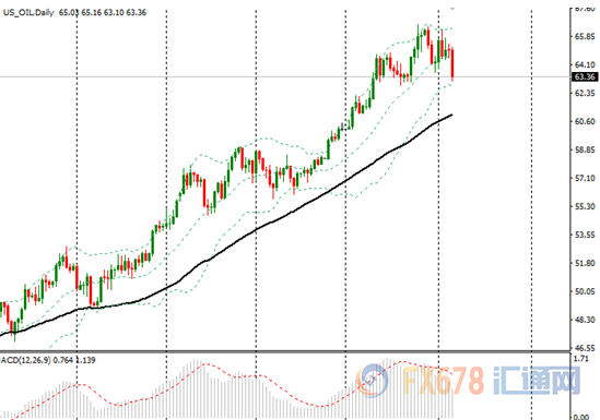 在美油日线图中,投资者可以发现,目前油价仍然处在上涨的趋势之中,各个均线都偏向看多,但是在经过连续大幅上涨之后,油价上涨动能放缓,存在高位整理,甚至回落调整的可能。