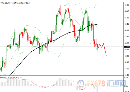 在美油价格小时图中,目前油价短线价格走势偏向空头价格仍然运行在下行通道之中,在经过调整之后,油价仍然有望进一步回落走低。