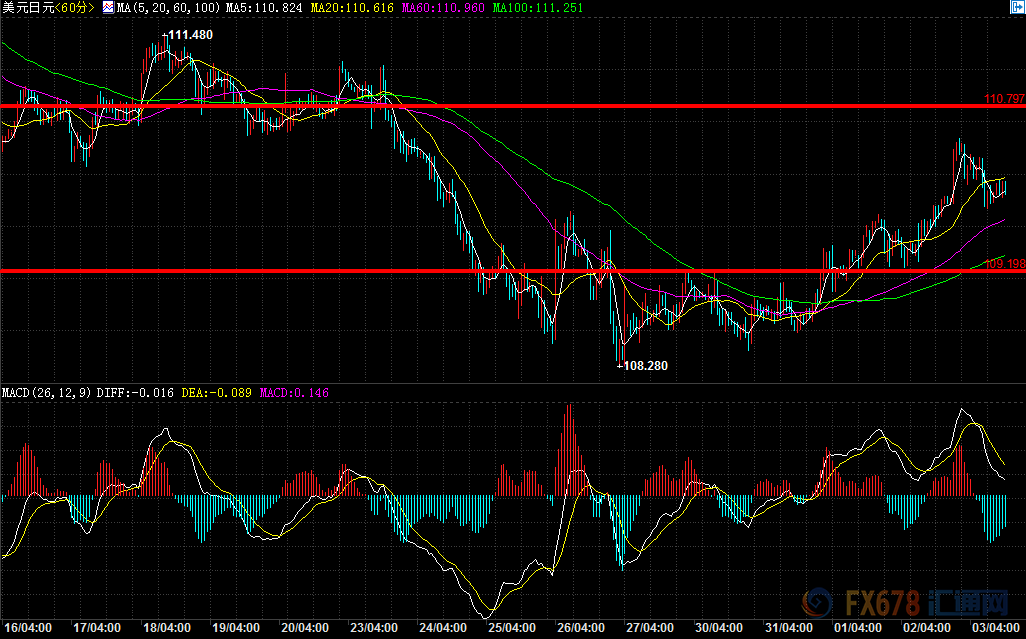 周一(2月5日)亚市早盘,' 美元兑' 日元小幅上冲至日内高点于110.29一线后出现快速回落,创出日内低点于109.790一线。目前行情交投于110.20,于110一线附近做窄幅震荡。