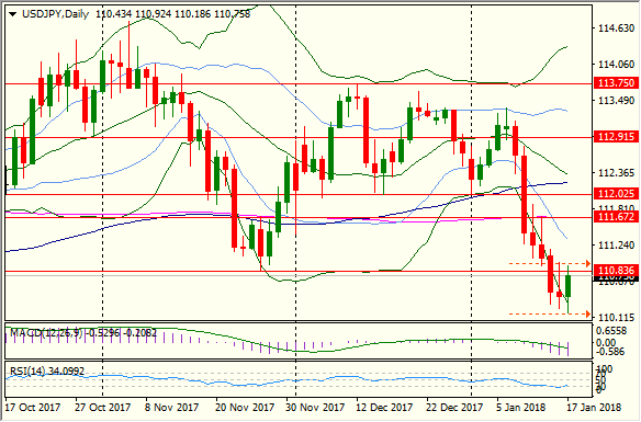 ②日线图上,汇价正回测11月低点110.84附近颈线关键阻力,若汇价不能稳定站上该水平位,仍可能二次探底;