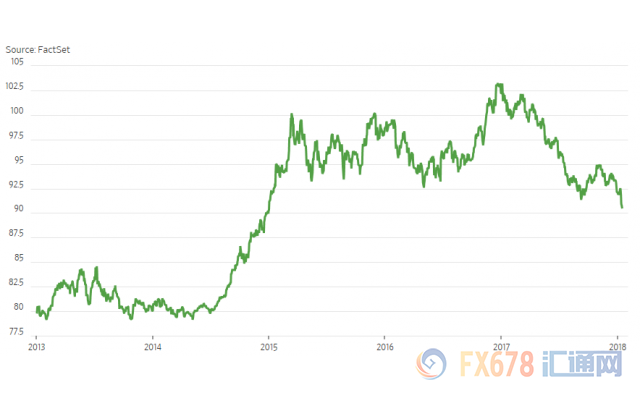 ' 美元多头今年开年没有感受到“新年快乐”。根据ICE美元指数,美元在2018年开始下跌至三年最低点,并且正在对2014-2015的大涨带来不小的冲击(可能抵消很多)。