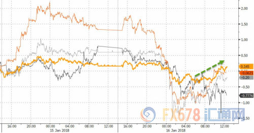 【英国通胀年率降至3%,为六个月来首次下降】英国12月CPI年率降至3%,为六个月来首次下降,主要由于机票以及游戏玩具价格下降;此前11月CPI年率为3.1%,为五年来最快增速。英国12月核心CPI年率降至五个月以来的低点2.5%, 这可能是一个转折点的开始,预示2016年英国脱欧公投的影响开始褪色。经济学家和英国央行预测,2018年英国会出现经济放缓,后者预计在2018年底会降至2.4%的水平。虽然公布的通胀数据略微下降,但并不代表长期层面而言通胀将会持续下降。