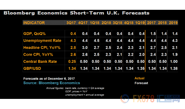 2018年英国就业市场料仍未能实现充分就业,在此预期下,彭博预计2018年全年英国央行按兵不动,2019年才可能进行下次加息。