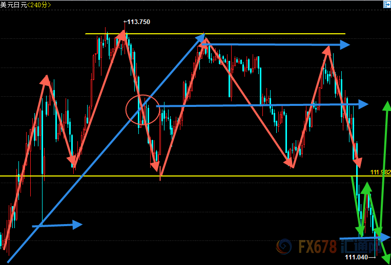 昨日提到除非收盘站上111.90一线,否则美元兑日元将依然处于跌势。目前美元兑日元最直接的目标是110.85一线,这个位置是2017年11月的低点,同时也是一个强支撑,如果跌破了110.85将会为进一步下行打开空间,行情将会试探109.9一线附近,这个位置位于2017年11月16日低点101.15和2017年9月的低点107.3所形成的上升趋势线上。目前上方最直接的压力是112.05,只有明确站上112.5一线才能预示着空头行情告一段落。