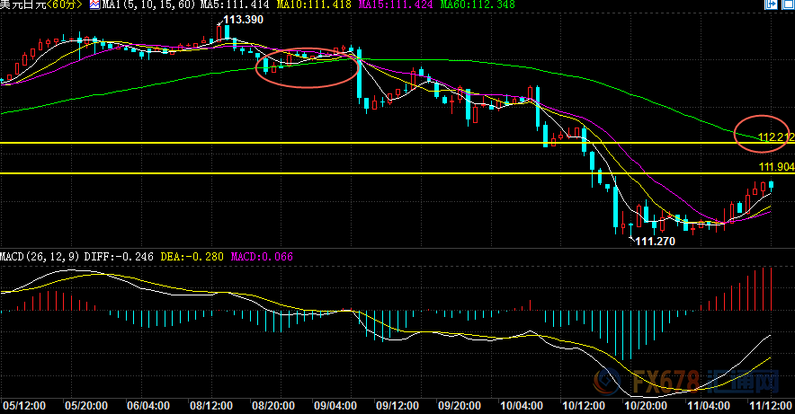 美元兑日元:看跌,美盘时段收于111.9一线上方立场转为中性