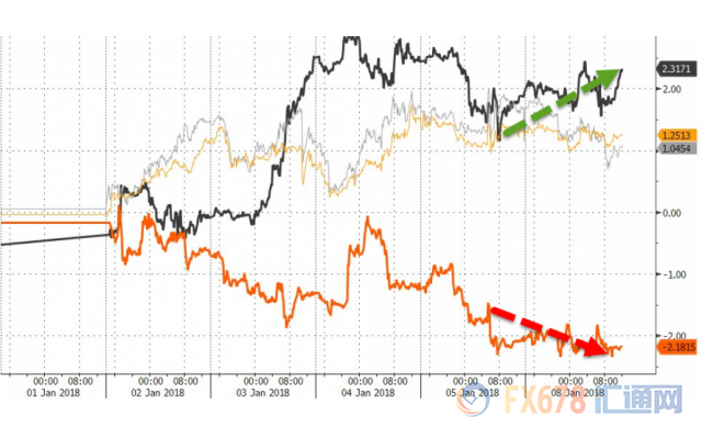 另一方面,美元指数自去年12月底以来首次出现上涨,升破超过92点,刷新本年度开年以来的高位。