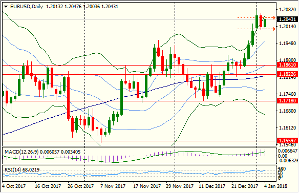 欧元兑美元亚欧时段重拾升势,刷新日高1.2037;隔夜美联储公布12月会议纪要,多名委员支持继续渐进加息,总体措辞鹰派,一度打压欧元;但因市场美联储加息的炒作已经相当充分,纪要的影响力有限,欧元日内重拾升势;但周五将公布非农报告,警惕多头平仓结利。