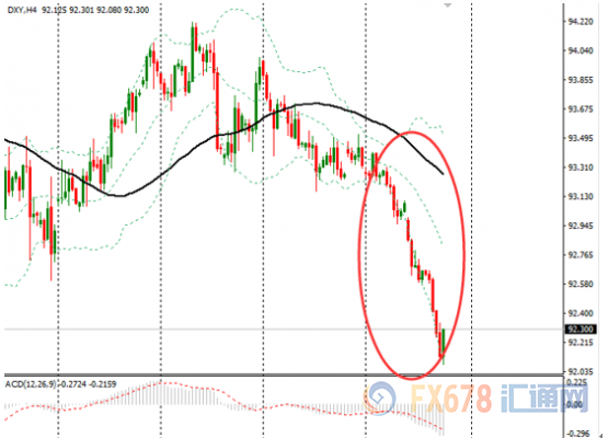 图:美指4小时本周走势大幅下挫