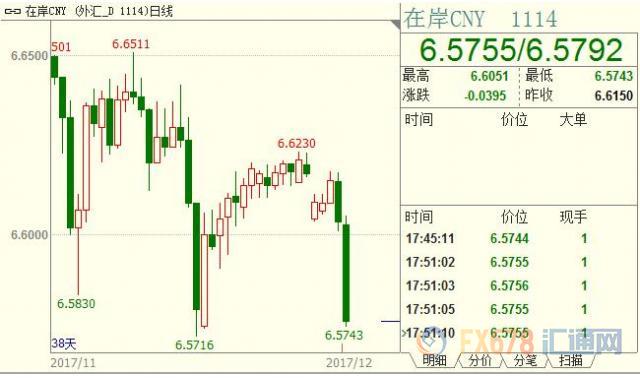 另有中资行交易员指出,受午后集中结汇的影响,美元兑人民币技术上向下突破了,自营盘也不愿承接,加上今日市场流动性不好,人民币在尾盘快速上涨。