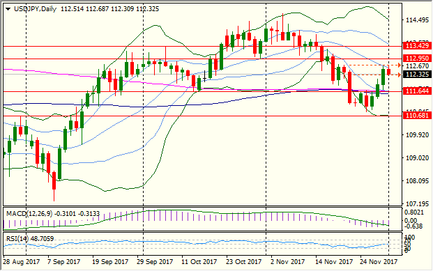 直接阻力位于20日均线112.59、10月末低点112.95、10月初高点113.43;