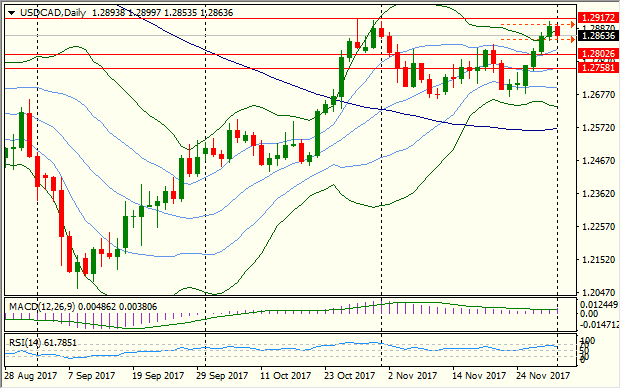 上方阻力位于前期10月高点1.2915、200日均线1.2969;下方支撑位于1.28以及20日均线1.2758。