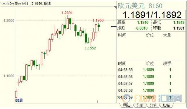 欧元周线终结三连阳,本周收低0.33%至1.1891。尽管欧洲经济正在稳步复苏,但通胀低迷仍然是' 欧洲央行面临的一大难题。