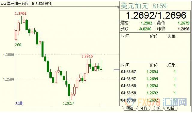 美元兑' 加元本周一度刷新11月1日以来高点,但随着加拿大第三季度GDP及11月就业数据双双好于预期,汇价完全回吐本周前4个交易日涨幅,终盘收低0.14%至1.2692,周线上留下明显长上引线。