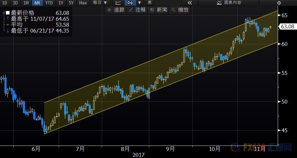 国际油价因此在周二走高,同时,油价还受到了OPEC产油国尼日利亚和伊拉克先后发生恐怖爆炸事件的拉动。而目前,11月30日的OPEC半年度会议也已经进入了最后一周倒计时,此时却再度有“积极”消息传出称,各方已经接近达成妥协结果,欲将原本于2018年3月到期的减产协议续期半年至9月点,虽然这仍低于此前预计的再延长9个月至2018年底的最乐观预期,但至少比没有好。此消息对油价的利多也显而易见。