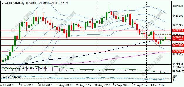 澳元兑美元亚欧时段强劲上行,创一周新高0.7835;不及预期鹰派的美联储纪要引发汇价持续反弹。