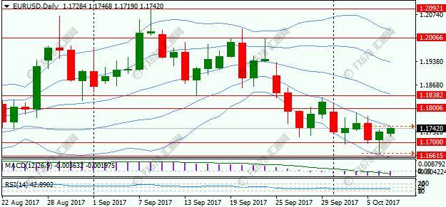 欧元兑美元亚欧时段震荡盘整,交投于1.1719-1.1747区间;上周五公布的非农就业报告喜忧参半,但市场对美联储年内再度加息的预期升温,限制了欧元兑美元的涨幅;目前多空争夺,但汇价仍处于下行趋势中。