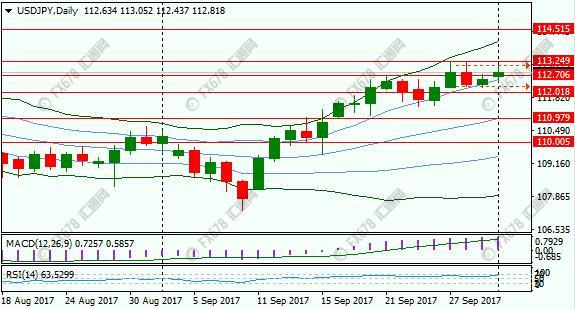 汇通网元易指出,周线图上,美元兑日元升入双布林带看涨通道,RSI升破50,但布林带水平,汇价中性偏多;日线图上,美元兑日元持续运行于双布林带看涨通道,RSI尚未超买,趋势偏多,但动能温和;短线倾向于在重要支撑位择机做多,下方支撑位于前高112.71-113区间、112关口以及110.98;上方阻力位于上周高点113.25、114关口以及7月高点114.49。