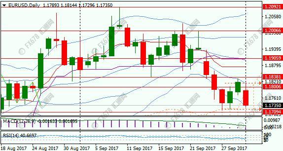欧元兑美元亚欧时段大幅跳水,欧元兑美元刷新两个交易日低点1.1732;西班牙加泰罗尼亚地区官员周一称,90.09%的投票者支持独立,欧洲政治不确定性再度升温,令欧元兑美元承压。