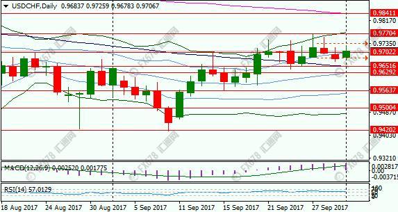 美元兑瑞郎亚欧时段持续反弹,刷新两个交易日高点0.9726;' 欧元区政治不确定性骤升,' 美联储年内再度加息预期回暖,两方面因素均利好美元兑瑞郎。