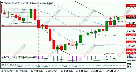 美元兑加元亚欧时段刷新日高1.1221;美债收益率走高,兼之上周五公布的加拿大GDP数据不佳,均利好美元兑加元。汇通网元易指出,周线图上来看,美元兑加元升破200周均线以及前期低点,MACD有望形成金叉,趋势转为中性;日线图上来看汇价进入双布林带看涨通道,RSI升破50,短线偏多;倾向待汇价回调至关键支撑位附近择机做多;下方支撑位于1.24-1.2411(7月末低点)区间、20日均线1.2291-1.23区间,以及1.22关口;上方阻力位于上周高点1.2531、1.26关口以及8月底高点1.2662。