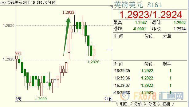 汇通财经易汇通行情软件显示,北京时间16:39,英镑兑美元报1.2922/25。 【免责声明】本文仅代表作者本人观点,与汇通网无关。汇通网对文中陈述、观点判断保持中立,不对所包含内容的准确性、可靠性或完整性提供任何明示或暗示的保证,且不构成任何投资建议,请读者仅作参考,并自行承担全部风险与责任。