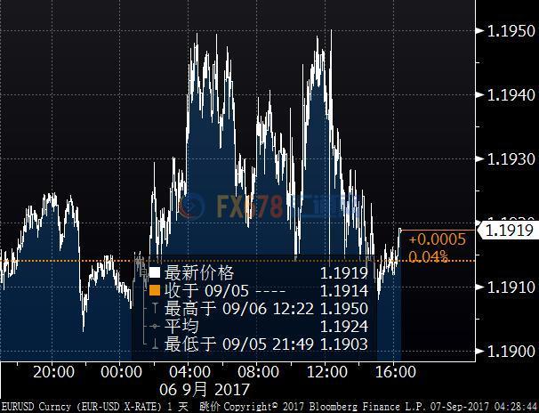 ' 欧元兑美元纽约尾盘基本持平,报1.1910,' 欧洲央行会议结果将于周四出炉。欧元兑美元缩减了稍早的升幅,此前彭博援引了解情况的' 欧元区官员报道称,欧洲央行不太可能在10月前就减少购债做出决定。