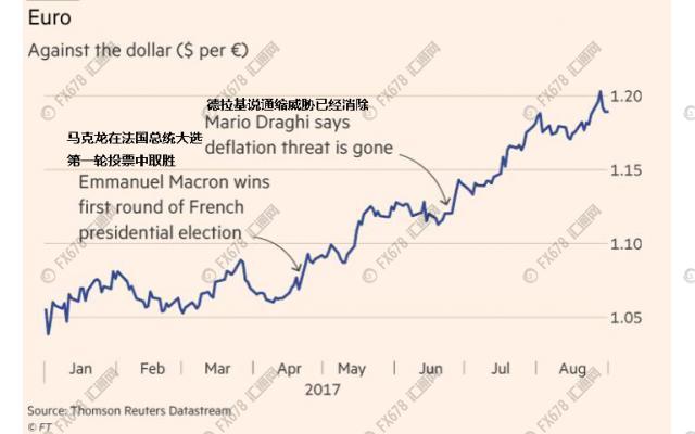 在8月下旬的杰克逊霍尔央行年会上,外汇市场对德拉基讲话的敏感性得到了强化;当时,他演讲的重点没有放在货币政策,但仍被市场视作买入欧元的信号,随后欧元兑美元触及1.20关口,这是自2015年以来的首次。