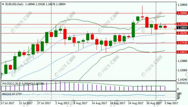 nload=imgresize(this); >汇通网元易认为,周线上,欧元兑美元持续运行于双布林带看涨通道,但RSI持续超买,MACD有形成死叉的可能,趋势偏多但面临回调压力;日线图上汇价交投于20周期1标准差布林带上轨下方,MACD背离且死叉,趋势中性;下方支撑位于20日均线1.1830、1.17以及8月17日低点1.1662;上方阻力位于1.20关口以及近日顶部1.2070。