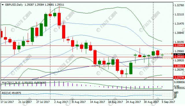 nload=imgresize(this); >周线图上,汇通网元易指出,该货币对交投于20周均线附近,趋势中性;日线图上,汇价盘收复20日均线后正回测该趋势线,布林带趋于水平,MACD金叉,短线中性略微偏多;汇价目前交投于多信号聚集的1.2916附近,下方支撑位于8月31日低点1.2851、8月24日低点1.2773;上方阻力位于上周高点1.2995-1.30关口,以及1.31关口。