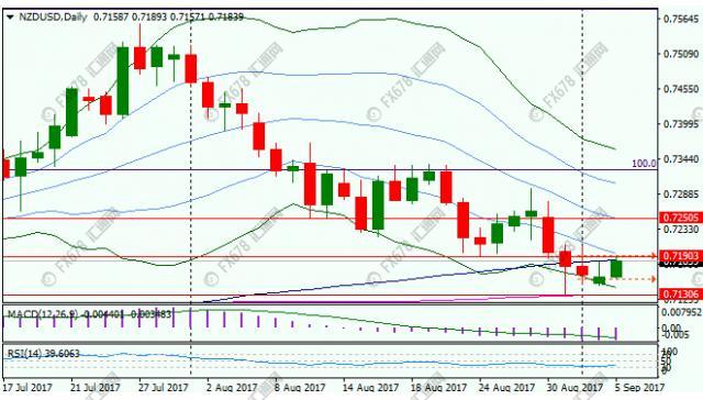 纽元兑美元亚欧时段随澳元、加元一起走强,刷新两个交易日高点0.7188。汇通网元易指出,周线图上,该货币对跌破20周均线,MACD形成死叉,趋势中性偏空;日线图上,汇价运行于双布林带看跌通道,正上测100日均线,短线偏空;可考虑于重要阻力位附近做空,下方支撑位于两百日均线0.7131以及0.71关口;更上方阻力位于近期低点0.7191-0.72区间,以及20日均线0.7251。