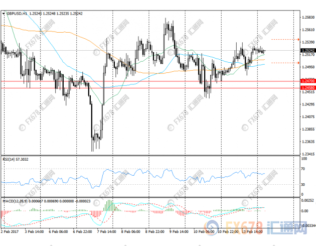 周二(2月14日)' 英镑兑' 美元在开盘后在1.25关口上方维持窄幅整理的走势,在近期脱欧风险有所减弱,' 英国自身经济数据表现喜人,以及英国央行表达出较为乐观的态度后,英镑后市有望发力上行。