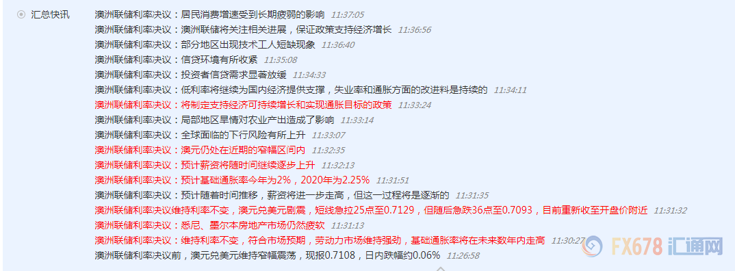 澳洲联储整体表现基本符合市场预期,汇通网在决议前的快讯和文章中均有播报。