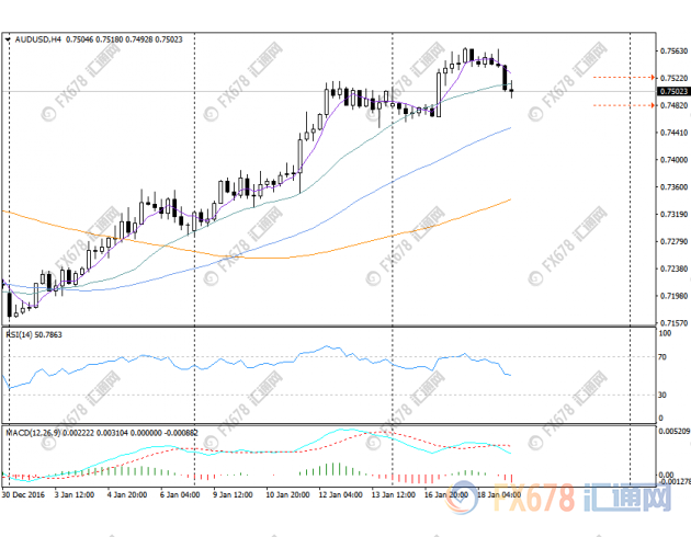周四(1月19日)澳大利亚公布的12月季调后失业率由前值的5.7%上升至5.8%,表现疲弱,' 澳元兑' 美元应声回落十余点,下破0.75关口,现交投于近两个交易日低位0.7496。