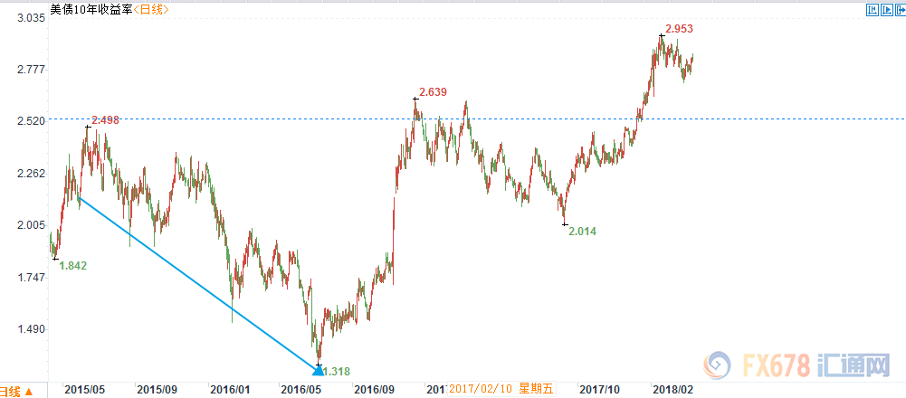 这种情况在2016年就已经出现,当时美债收益率自2.32%下降至1.36%。