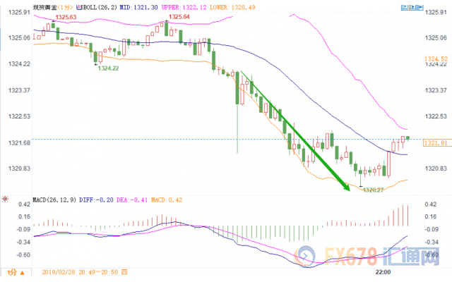 周四(2月28日),北京时间21:30' 美国公布多项经济数据,美国第四季度实际GDP及核心PCE物价指数最受市场关注。随着这两项指标均好于预期,' 美元指数短线反弹逾20点至96.143,日内跌幅几乎完全收复;而现货黄金短线跌逾4美元至1319.44美元/盎司,刷新日低,随后小幅回升。