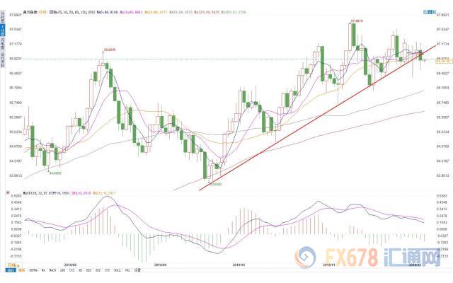 基本面:最近' 美国的利差出现了倒挂的现象,3年期收益率超过了5年期的收益率,引起了市场的担忧。表明市场对长期没有任何的盼望,只有短期的需求,如果接下去,10年期和2年期收益率也开始倒挂,那可能美国经济就真的会出现大幅度的下滑,对美元的继续走跌会有明显的助推作用。今晚,美国11月的非农就业数据将出炉,短线美元出现巨震的可能性较大。