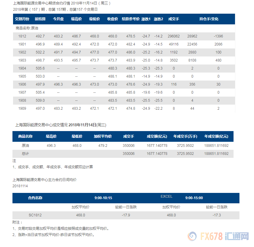 今日INE原油的加权平均价是468元/桶,较之前一交易日下跌17.3元。